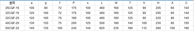 CQF型產(chǎn)品以增強聚丙烯為主材料,泵的過流零部件均為注塑成型,能耐大多數(shù)的有機和無機酸、堿和鹽類溶液,也始于在室外大氣中暴露,對應(yīng)力腐蝕破裂的抗蝕性良好。